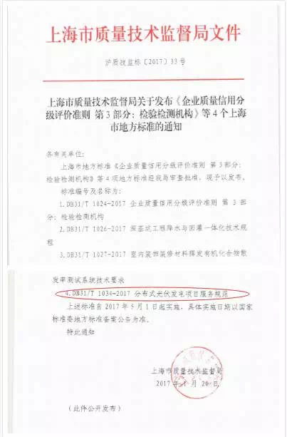 DB31/T1034-2017分布式光伏发电项目服务规范,自2017年5月1日起实施