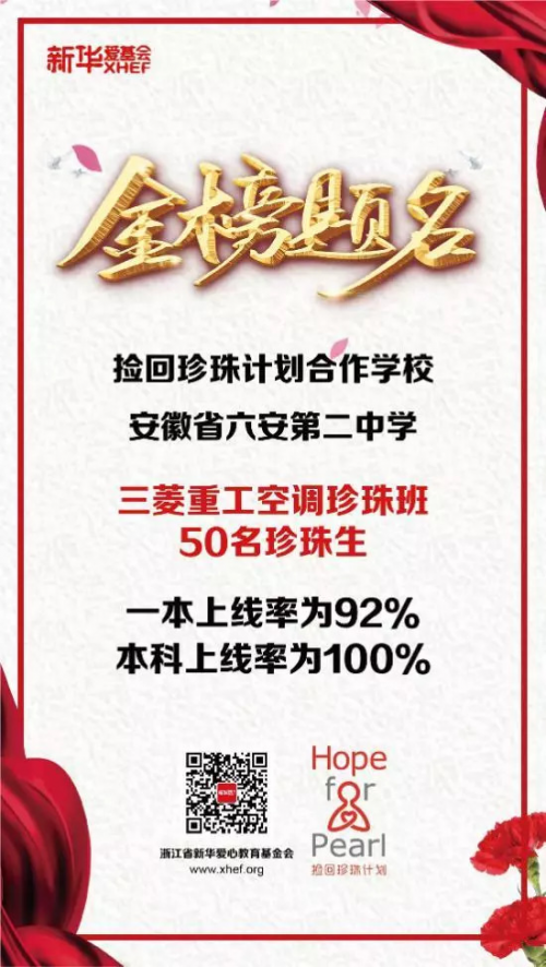 值得欣慰的是,在三菱重工空调的支持下,珍珠生们先后取得了非常可喜的成绩。从2012年到2018年,两届珍珠班的100位珍珠生全部考上了本科,第一届三菱重工空调珍珠班的一本上线率超过90%,第二届三菱重工空调珍珠班的一本上线率也达到了92%。