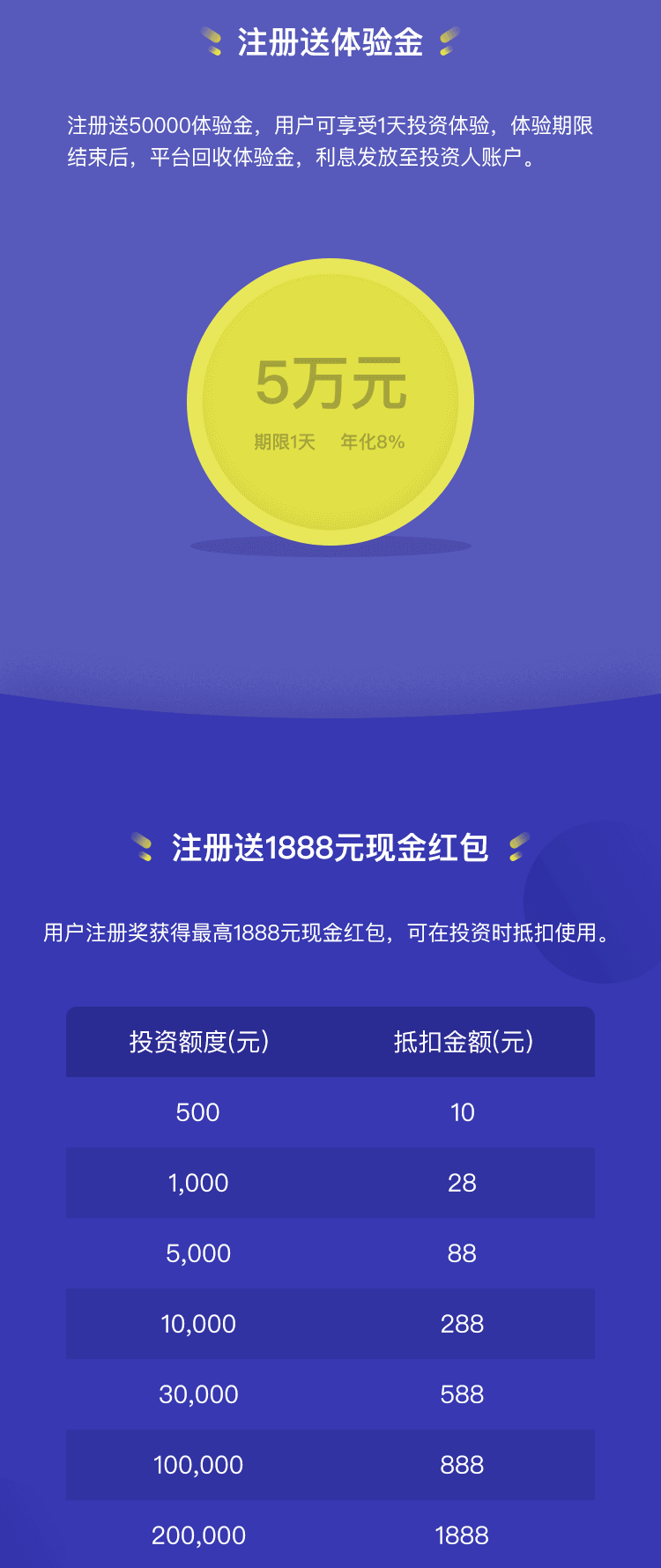 平台主打月标,百元起投,无服务费,而且现在注册送50000元体验金和1888元红包,月标年化收益在11%,最近的抽奖活动更是有苹果手机相送,最高可获得Smart汽车,现阶段非常适合入手。