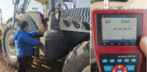 据了解,此次在新疆对阿波斯大马力高端智能拖拉机主要进行15大项22个方面的耐寒测试,其中包括液压油泵通过(高压滤,低压滤)在低温条件下吸油压力;液压油泵在低温条件下的流量是否满足设计要求;在低温条件下,油管接头是否有漏油;防冻液管接头在低温条件下是否因材质的不同会产生漏液现象;动力换挡各档位压力在低温条件下的状态表现测试;液压油在低温条件下的温升时间及为变速箱热车提供数据依据等。