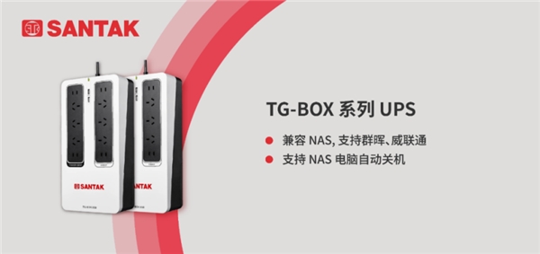 山特 TG-BOX 系列 UPS,专为保护办公设备而设计,含 10 位不同类型的插座接口,支持 PC 与 NAS 通讯管理,配有符合 IEC61643-11 标准的防雷保护,无风扇静音舒适设计,全力守护办公设备与电子资料的安全。