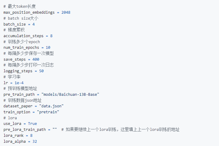 (1) 选用Baichuan-13B模型作为基座模型进行训练(无道德限制,较好中文支持,显存资源占用小)