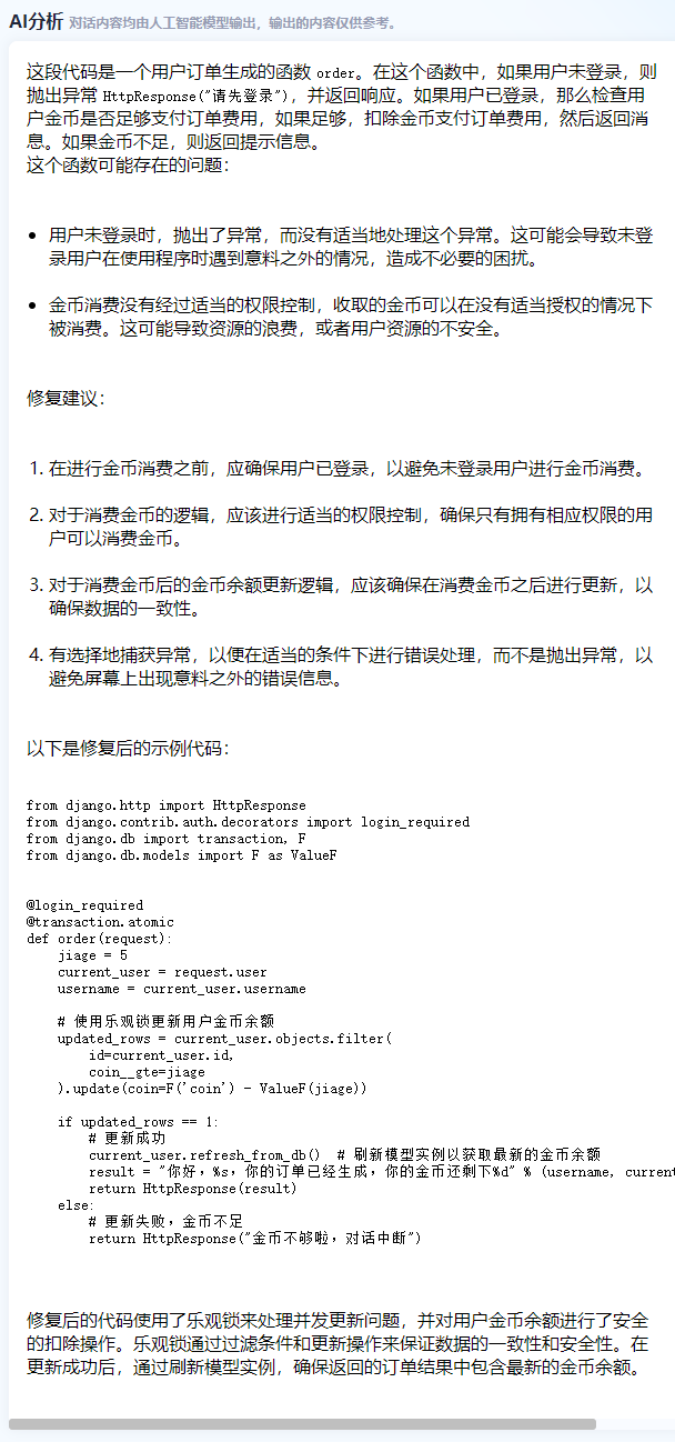 1) 代码审计&解释&修复建议