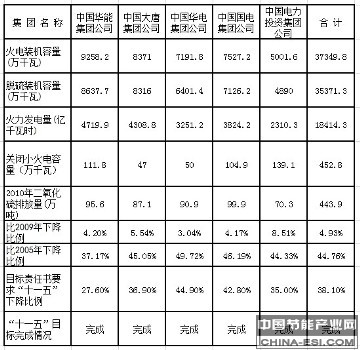 2010年度及“十一五”五大电力集团公司二氧化硫总量减排考核结果