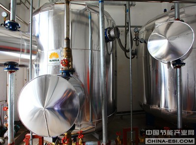 根据项目实际情况,索乐阳光设计整个项目每天用水量30吨,三处太阳能热水系统均为承压式二次换热系统。同步欧美太阳能系统技术,采用 U 型管集热器、太阳液强制循环换热,储水设备为闭式承压水罐,减少细菌产生;无需增压设备,出水压力接近市政自来水压力。