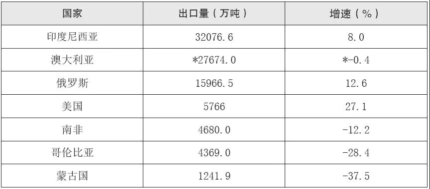 表3 2021年前三季度主要煤炭出口国出口变化情况