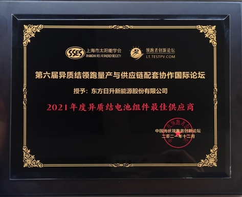 1月13日,“第六届异质结领跑量产与供应链配套协作国际论坛”在无锡圆满落幕,全球异质结领域顶级机构与领跑企业齐聚盛会,探索平价时代异质结技术的发展新契机。高功率组件技术领先企业东方日升受邀出席活动,并凭借高效N型电池技术与一体化实力,同时荣膺“2021年度异质结电池产业领跑先锋奖”、“2021年度异质结电池组件最佳供应商”。