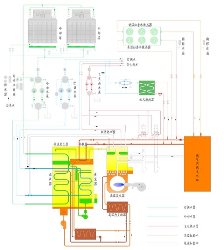 (2)多能源组合模式:远大针对冷热电联供系统的特点,开发出了热水制冷机组、蒸汽制冷机组、烟气制冷制热机组、混合能源型制冷制热机组,与各类发电机组无缝对接。
