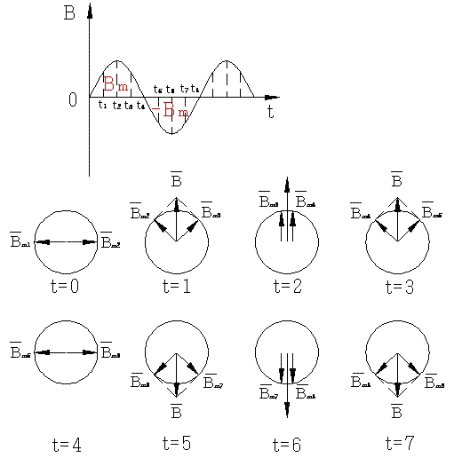 一个脉动磁场可以分解为两个幅值相等、速度相同、旋转方向相反的两个磁场.